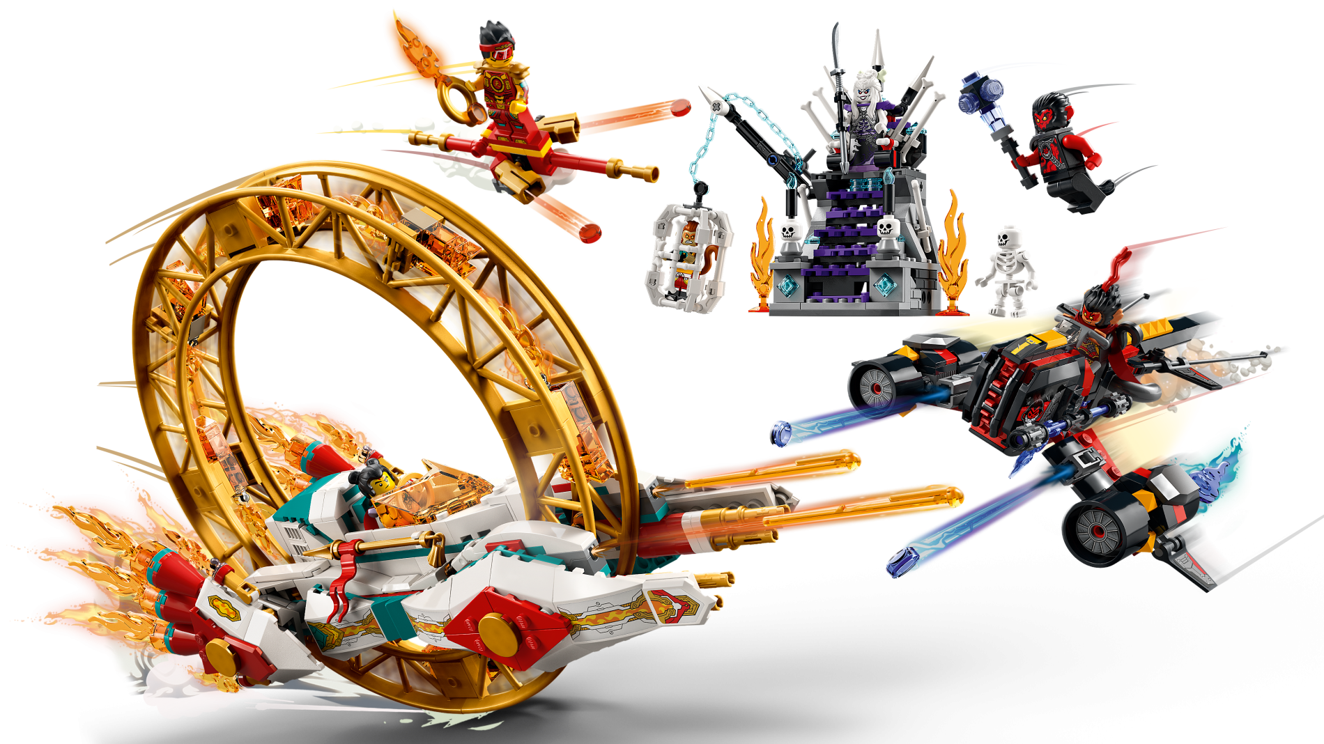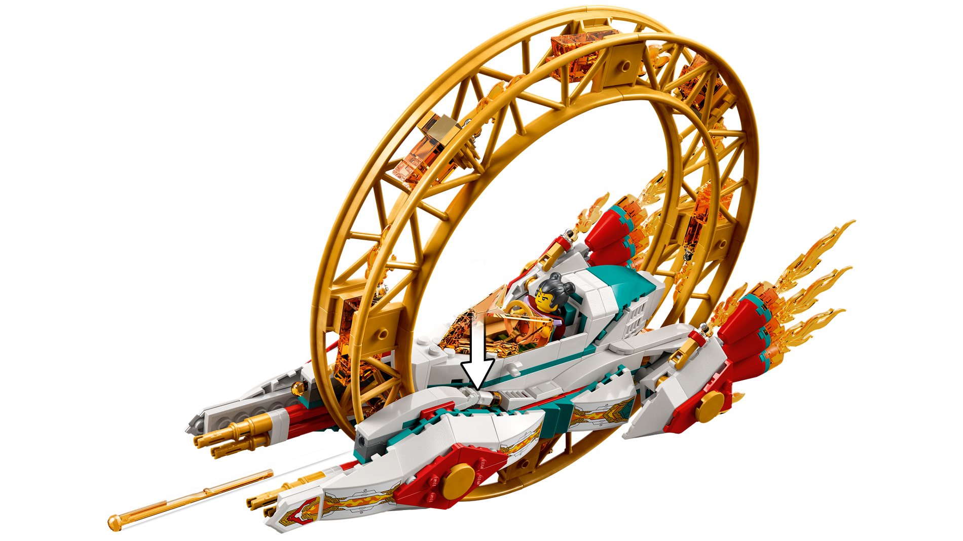 | 2 X Wedge 4 x 4 Triple Curved No Studs with Gold, White and Dark Turquoise Armor Plates, Screws and Bright Light Orange and Orange Flames Pattern (Sticker) - Set 80034 | White |   |  |